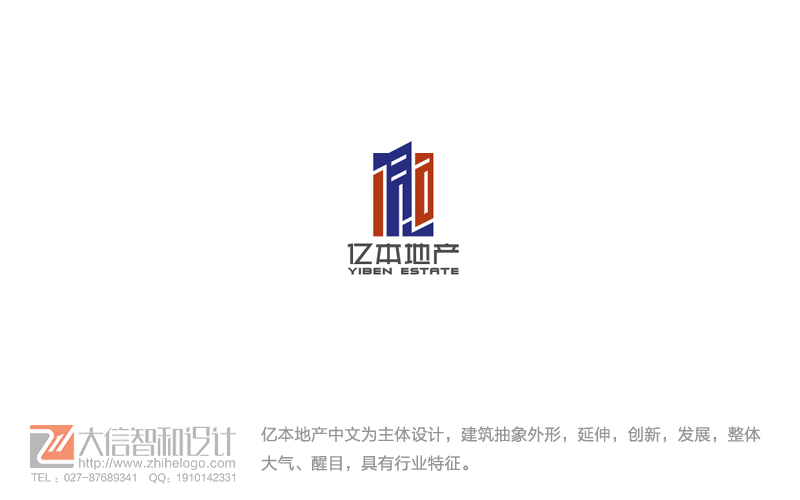亿本地产:地产业logo设计。以亿本中文为主体设计,建筑抽象外形,延伸,创新,发展,整体大气、醒目,具有行业特征。