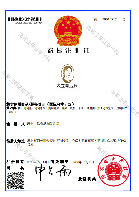 肖像商标注册成功案例--夹竹园三妈