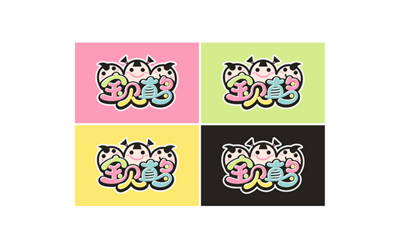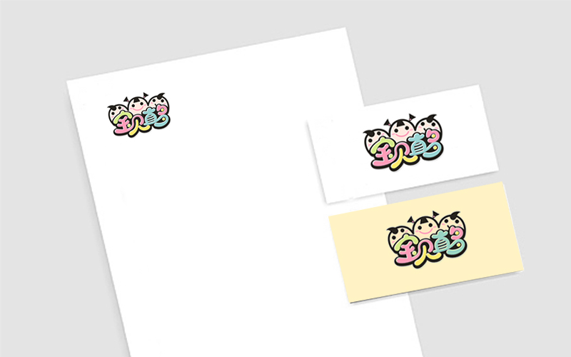 宝贝真多:以三个可爱的儿童卡通造型设计,笑脸,快乐童年,体现童装、游乐场,明快彩色调,整体时尚,醒目,具有行业特征。