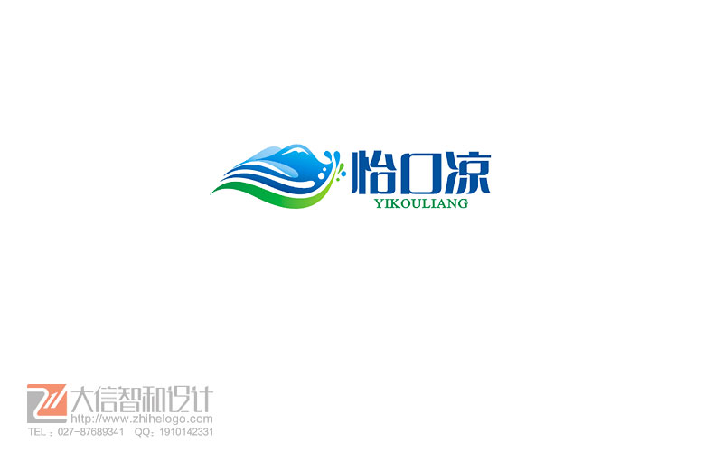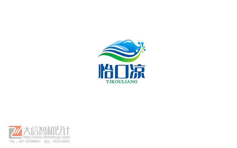 怡口凉:纯净水商标。以波浪为设计主体,蓝色调为主调,清爽凉爽,logo整体富有动感,具有视觉冲击力。