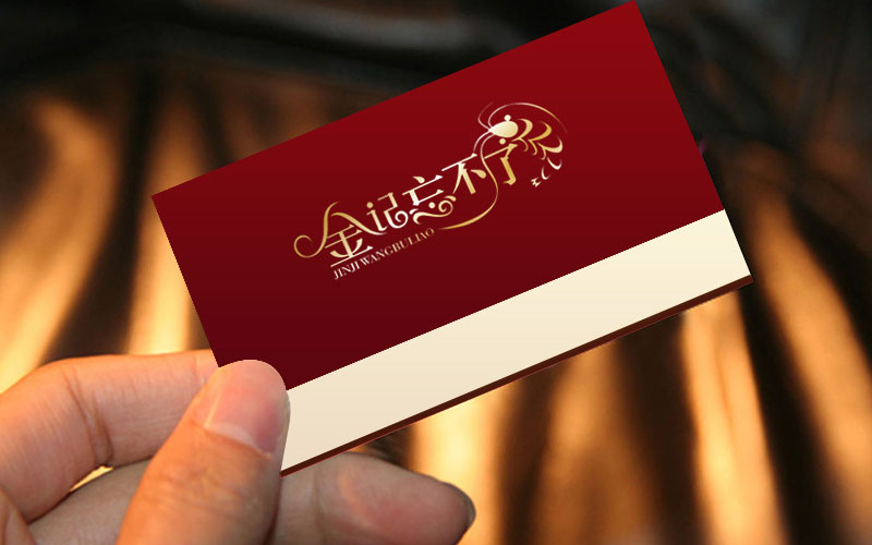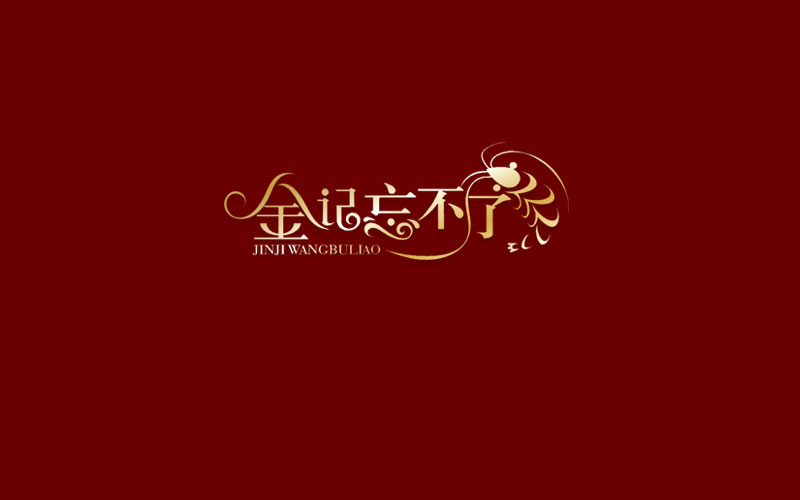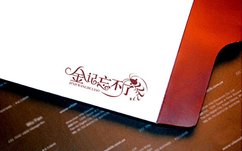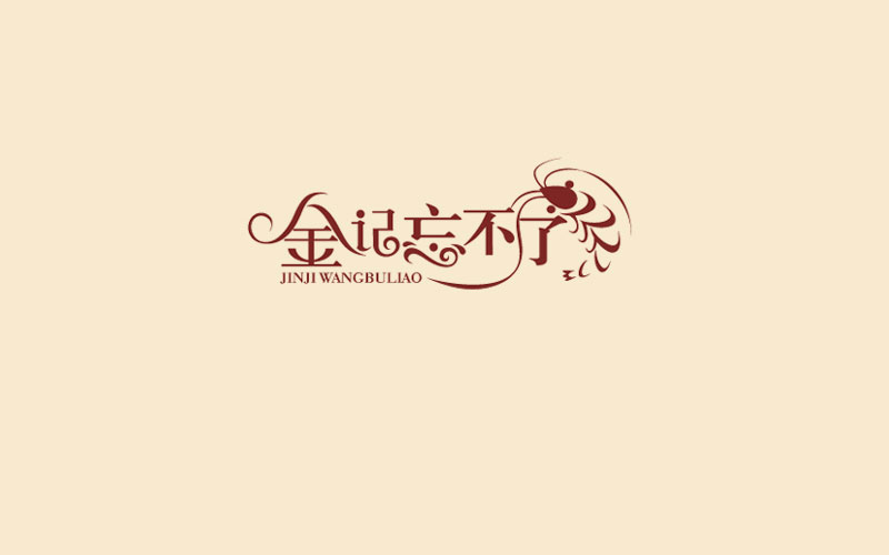 金记忘不了:龙虾馆logo。金色字体,酒红色底衬,表现“金”。颜色古典内敛,字体优雅,高档有品位。龙虾图案结合字体成为有机一体,直观。