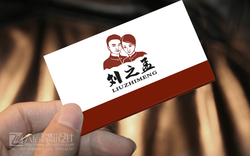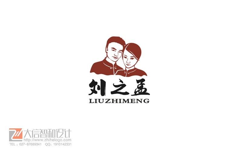 刘之孟:夫妻餐饮店商标,商标以图形设计为主,图形是夫妻二人的形像设计,文字配合夫妻二人的姓氏,造型简洁大方。
