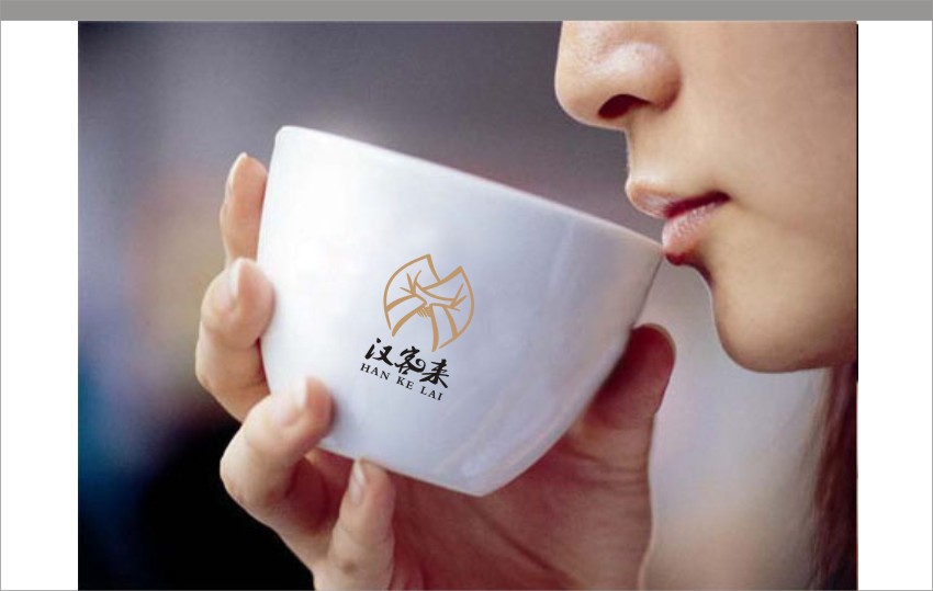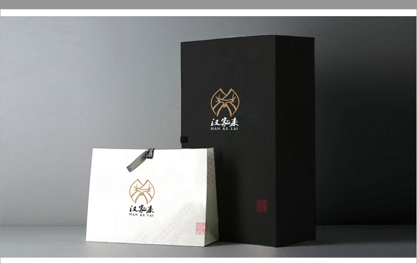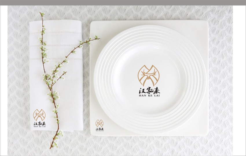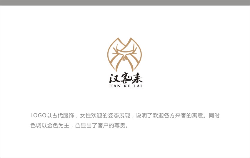 汉客来:LOGO以古代服饰,女性欢迎姿态展现,说明了欢迎各方来客的寓意,同时色调以金色为主,凸显出了客户的尊贵。