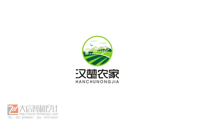 汉楚农家:以农田农庄风貌设计,体现原生态养殖,新鲜散养鸡鸭等农作物、有机蔬菜,天然生态环境下的健康农产品,绿色主色调,整体时尚,醒目,具有行业特征。